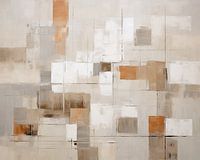 Stille Chaos | Abstract Geometrisch - Dit abstracte schilderij speelt met geometrische blokken in een zacht, aards kleurenpalet, van beige tot bruintinten met subtiele oranje accenten. Er heerst een spel van licht en schaduw, wat zorgt voor een rustige, maar toch boeiende compositie, ideaal voor een hedendaags minimalistisch interieur.