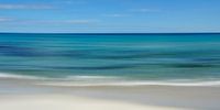 Turquoise blauw water, wit zand, wit zand, lichtgolven, vakantiegevoel op een abstracte manier