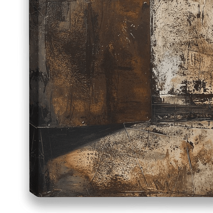 Stille Overpeinzing | Abstracte Vrouw - Dit kunstwerk vangt de blik met zijn rijke, aardse kleurenpalet, waarbij bruine en bronsachtige tinten overheersen. Het schilderij toont een vrouwelijk silhouet in profiel, doordrenkt van nostalgie en introspectie, tegen een achtergrond van abstracte elementen en textuur die een verweerd en…