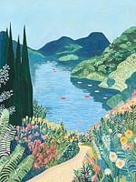 De kunstwerken zijn digitale vertalingen van verschillende materialen, zoals olieverf, acryl, stiften of potlood. De landschappen zijn opgebouwd uit speelse patronen, lijnen, stippen en strepen, die de compositie tot leven brengen. De eenvoudige, grafische vormen geven de natuur een moderne en dromerige uitstraling. Het voelt alsof je door een raam kijkt naar een zonnige dag waarin alles harmonieus samenkomt.