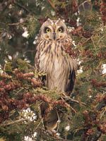 De velduil is een stille en mysterieuze bewoner van het Nederlandse landschap. In deze fine art natuurfoto kijkt de uil je recht aan, verscholen tussen de zachte groentinten van het bos. De ingetogen kleuren en het subtiele licht zorgen voor een rustige, tijdloze uitstraling die de natuurlijke schoonheid van het dier…