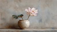 Zachte, minimalistische bloemencompositie die Japanse esthetiek combineert met rustige natuurlijke tinten, eenvoudige vormen en uitgebalanceerde negatieve ruimte, waardoor een serene, moderne en tijdloze botanische harmonie ontstaat.