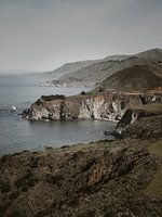 Stille Kust toont een moment waarop het landschap zichzelf niet probeert te bewijzen. De kustlijn strekt zich uit in zachte lagen van zee, rots en heuvel, zonder dramatiek of heldere kleuren. De oceaan is rustig, het licht diffuus, alsof de tijd hier even vertraagt.