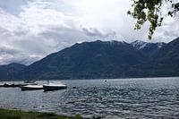 De rustige boten op de voorgrond, de zachte gloed van het water en de majestueuze, besneeuwde toppen van de Alpen op de achtergrond - deze foto vangt de vredige sfeer van een lentemorgen aan het Lago Maggiore. De wolken vertellen over de beweging van de lucht, terwijl de natuur straalt in al haar rust en kracht. Perfect voor iedereen die verlangt naar een moment om te onthaasten.