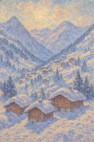 Een zachte kalmte rust over het alpendorp Arosa, waar zachte pastelkleurige luchten en ongerepte sneeuw elkaar ontmoeten. De wereld lijkt gepauzeerd - elk dak bedekt, elke boom verzacht onder het gewicht van de winter. Dit kunstwerk vangt die vluchtige, poëtische stilte die alleen bestaat na sneeuwval, wanneer het licht deel wordt van…