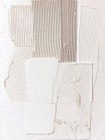 verfijnd staaltje van minimalistische textuurkunst, opgebouwd uit verschillende vlakken en oppervlakken in een monochroom palet van wit en subtiel grijsbeige. De compositie bestaat uit rechthoekige vormen en handmatig aangebrachte texturen die variëren van glad en strak tot ruw en korrelig. Elk vlak vertelt een eigen verhaal door het…