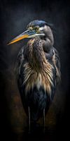 Een schilderij gehuld in mysterie, waar een eenzame reiger staat als een wachter in de duisternis, zijn gestalte subtiel verlicht door de bleke maan die zachtjes haar licht laat vallen. De contouren van rimpelingen strekken zich uit als fluisteringen van het wateroppervlak, terwijl de reiger roerloos staat, bijna versmolten met de…