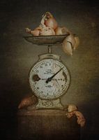 Uien en de schillen doen het altijd goed in een stilleven. Dit keer gecombineerd met een antieke weegschaal. Ook een zoete aardappel is in het beeld te zien. Bewerkt tot een schilderij van een oude meester maar nog altijd een foto gemaakt in mijn thuisstudio wat niets meer is als de eetkamer met aangepast licht en achtergrond.