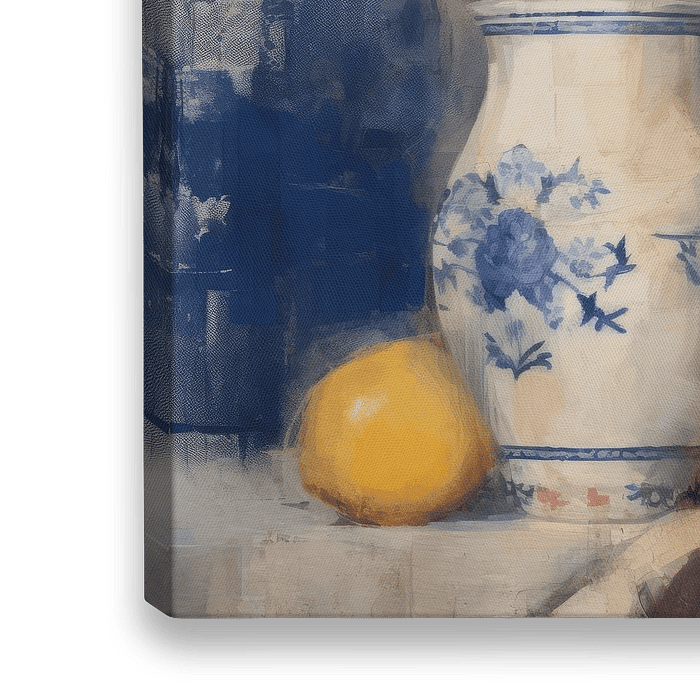 Stilleven in Delfts blauw met citroenen. Kies zelf het formaat en materiaal bij dit werk en maak er een echte blikvanger van voor jouw interieur.