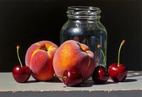 Stilleven Met Perziken en Kersen. van AVC Art Studio