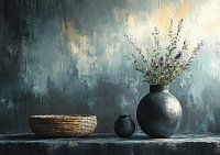 Stilleven Moderne Rust | Echoed Serenity - Modern impressionistisch stilleven met bloemen in rustieke vazen