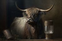 Als trotse Schotse hooglander wil ik u graag overtuigen om mijn afbeelding als stillevenfoto aan uw muur te hangen. Mijn imposante verschijning, met mijn lange horens en ruige vacht, zal zeker indruk maken op iedereen die uw huis bezoekt.
