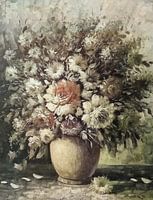 Dit bonte olieverf schilderij is in rustige kleuren combinatie digitaal teruggebracht.