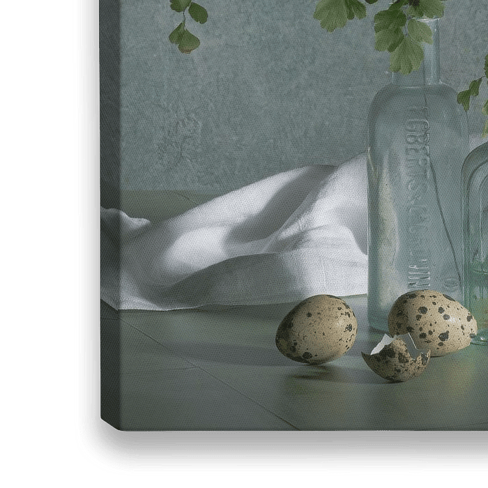 Koop dit bloemen kunstwerk Stilleven, antieke flesjes met viooltjes en kievitseieren van Oda Slofstra op canvas, aluminium dibond, (ingelijste) fotoprint, behang en ArtFrame, op maat geprint in Fine-Art kwaliteit.
