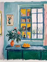 Stilleven boekenkast met uitzicht: Minimalistische Kunst in Matisse-Stijl van Thea