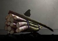 Toen ik het schilderijtje zag in het Rijksmuseum van Amsterdam van "Stilleven de Asperges" van Adriaen Coorte. Kwam ik tot een inspiratie van dit meester werk en uiteraard zit hier een prachtige vlinder in verwerkt