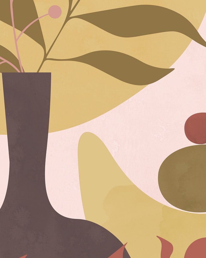 Dit stilleven, dat ik een fragment noem, is gebaseerd op een van mijn eerdere stillevens (werkcode: 864473). Het toont maar een deel van het origineel en wekt zo de illusie dat de kijker vlak naast het arrangement staat, misschien om een bepaald aspect dieper te onderzoeken. Atypisch voor stillevens is de indruk van intimiteit, die ontstaat doordat de elementen gedeeltelijk aan het zicht onttrokken zijn. Bovendien creëerde ik een bepaalde dynamiek door sommige delen te herschikken in vergelijking met het originele kunstwerk.