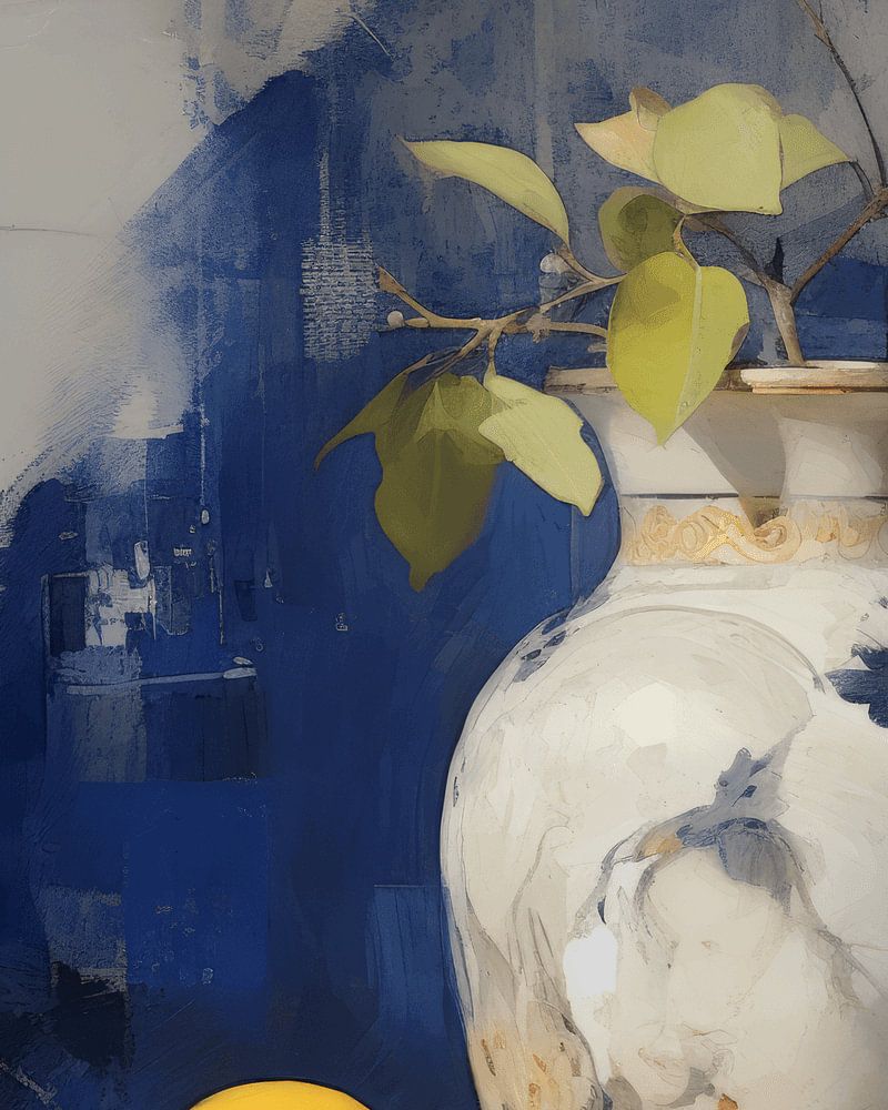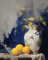 Stilleven in Delfts blauw met citroenen. Kies zelf het formaat en materiaal bij dit werk en maak er een echte blikvanger van voor jouw interieur.