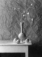 De gefotografeerde voorwerpen zijn beplakt met krantenpapier. Gefotografeerd met Hasselblad 6x6 camera. Met analoge technieken is een grof korrelraster toegevoegd.