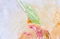 De uitgebloeide bloemen van witte en roze pioenrozen zijn individueel in het water gelegd en enkele dagen diep ingevroren. Bij het begin van het bevriezen zijn de bloemen bewogen om luchtbellen en verschillende ijskristallen te krijgen in het ijs. Tijdens het fotograferen ontdooit de dikke laag ijs om de bloem, ontstaan er voortdurend nieuwe effecten en daardoor andere beelden. Als het ijs gesmolten is, dan is het over en is de foto niet opnieuw te maken. Het is een eenmalig zeer bewerkelijk proces van voorbijgaande aard en daardoor is elke foto uniek. Het is abstracte natuur geworden, stillevens van vervliegend leven.