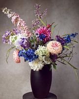 Koop dit bloemen kunstwerk Stilleven kleurrijk boeket bloemen met musje van By Marjolein Design op canvas, aluminium dibond, (ingelijste) fotoprint, behang en ArtFrame, op maat geprint in Fine-Art kwaliteit.