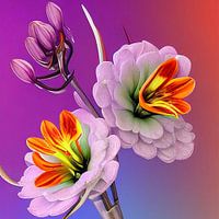 Stilleven met bloemen een digitaal experiment. Een explosie van kleur, zorgvuldig samengesteld en een lust voor het oog.