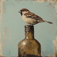 Een verstild moment gevangen in verf: een huismus rust op de hals van een fles, omringd door een sobere achtergrond in natuurlijke kleuren. Dit olieverfschilderij combineert eenvoud met karakter en straalt kalmte uit. Door de ingetogen tinten past het moeiteloos in een Scandinavisch, landelijk of minimalistisch interieur. Een subtiele…