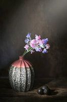 Stilleven met lathyrus en passievruchten.