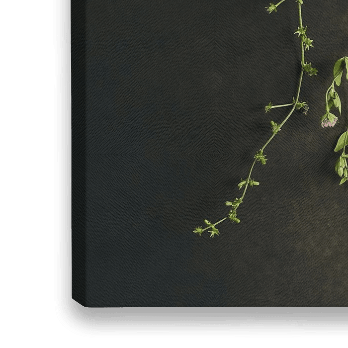 Breng een vleugje natuur en nostalgie in huis met deze sfeervolle fine-art foto. Gedroogde bloemen hangen sierlijk aan een lijn, vastgezet met houten wasknijpers, terwijl een mus en een appelvinkje rustig toekijken. De warme, donkere achtergrond geeft het beeld een tijdloze en schilderachtige uitstraling, en is perfect voor liefhebbers…