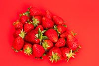 Stilleven met aardbeien op rode achtergrond.
