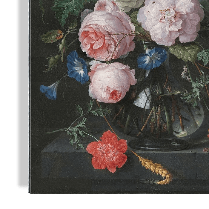 Koop Stilleven met bloemen in een glazen vaas, Jan Davidsz. de Heem als reproductie geprint op canvas, aluminium dibond, (ingelijste) fotoprint, behang en ArtFrame. Voor jou op maat geprint in Fine-Art kwaliteit.