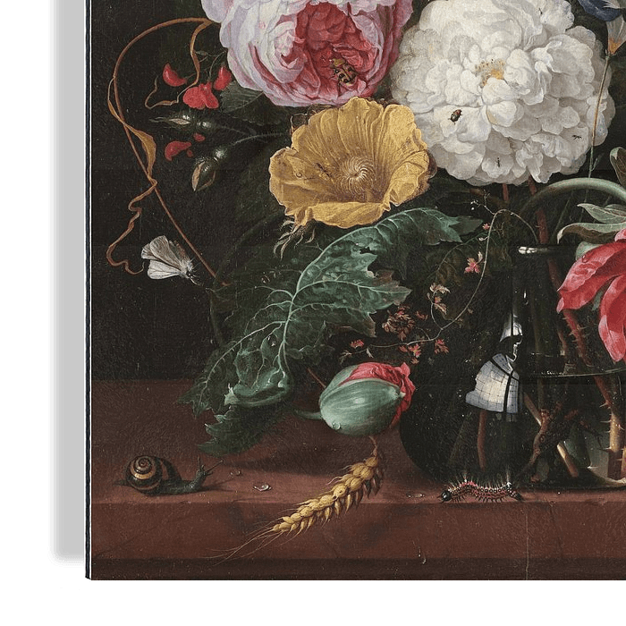 Koop Stilleven met bloemen in een glazen vaas, Jan Davidsz. de Heem als reproductie geprint op canvas, aluminium dibond, (ingelijste) fotoprint, behang en ArtFrame. Voor jou op maat geprint in Fine-Art kwaliteit.