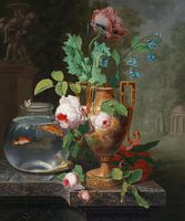 Stilleven met bloemen in een vaas en een schaal met goudvissen, Jean Baptiste Berré