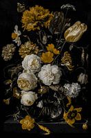 Dit is een digitale bewerking in gouden herfstkleuren van het beroemde stilleven met bloemen in een glazen vaas, van Jan Davidsz. de Heem. Het originele werk hangt in het Rijksmuseum.