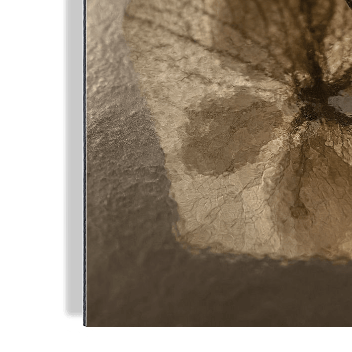 "Stilleven met bloemen in taupe: Het hortensiablaadje in het licht" is een macrofoto van een blaadje van de hortensia die al deels vergaan is, waardoor je prachtig de nervenstructuur kan zien van het blad. Als je inzoomt op het werk zie je bij de bovenste twee blaadjes de nerven structuur goed. De blaadjes zijn heel fragiel en dun,…