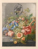 Stilleven met bloemen, vruchten, een koolmees en een muis, Herman Henstenburgh, ca. 1700 - ca. 1710