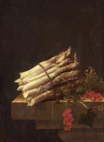Stilleven met bundel asperges en takje met rode aalbessen van Adriaen Coorte. Het schilderij is gesigneerd in 1696