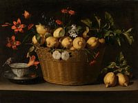 Stilleven met citroenen in een rieten mandje, Juan de Zurbarán