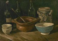 Stilleven met drie flessen en aardewerk, Vincent van Gogh, 1884-1884-85