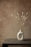 Sober stilleven met naturel droogbloemen in een prachtige witte, porseleinen vaas. Het geheel staat op een oude, steigerhout tafel. Het is een sober, rustgevend beeld met natuurlijke kleuren. Er is mooie zachte lichtinval vanuit een raam en mooie schaduwen. Droogbloemen worden steeds meer gebruikt als decoratie in huis, maar ook als wanddecoratie een sieraad in huis. Extra mooi om dit werk te combineren met mijn andere stilleven foto's.