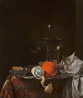 Stilleven met fruit en wijnglazen op een zilveren schaal, Willem Kalf