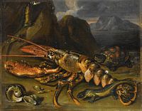 Stilleven met kreeft, hagedissen en schildpad, Marco de Caro
