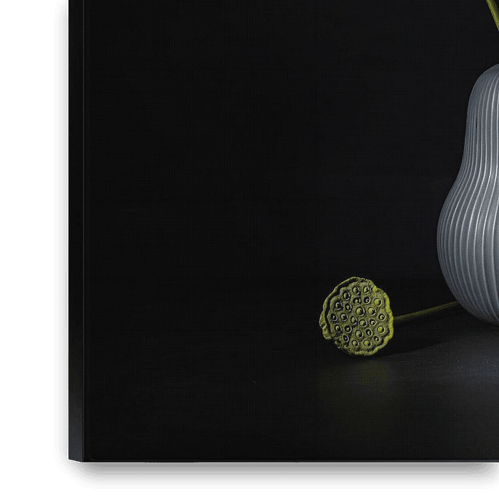 Jouw gekozen kunst op doek, gespannen in een aluminium frame. Snel en eenvoudig te verwisselen voor een frisse uitstraling en helemaal zoals jij het wilt.