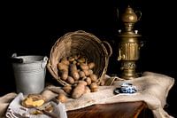 Stilleven gemaakt bij natuurlijk licht van raam op het noordoosten. De kleuren in de krant maken het beeld, hoewel in oude 17e Eeuwse stijl toch hedendaags.