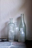 Stilleven met medicijnflessen van een vorige bewoner van mijn huis. Hij was in de jaren '20 en '30 van de vorige eeuw sierverloskundige en castrator voor de regio en heeft gedurende jaren het in onbruik geraakt glas in ene kuil naast zijn boerderij gestort. Nu, bijna 100 jaren later kom ik ze bij het werken in de boomgaard tegen. Een prachtige verstilde herinnering aan wat ooit was.