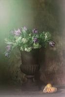 Stilleven met paarse tulpen en citroen.Overal inpasbaar door zijn klassieke maar ook moderne sfeer.