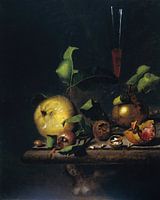 Stilleven met peren, mispels en een glas, Martinus Nellius, 1669 - 1719