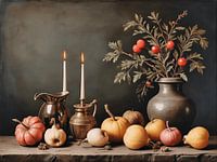 Koop dit stilleven Stilleven met pompoenen,kaarsen en een bloem van The Photo Artist op canvas, aluminium dibond, (ingelijste) fotoprint, behang en ArtFrame, op maat geprint in Fine-Art kwaliteit.