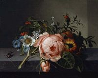 Stilleven met rozentak, kever en bij (1741), Rachel Ruysch