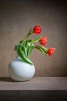 Dit modern stilleven " Stilleven met tulpen in een aarden vaas " word aangeboden door John van de Gazelle op Werk aan de Muur